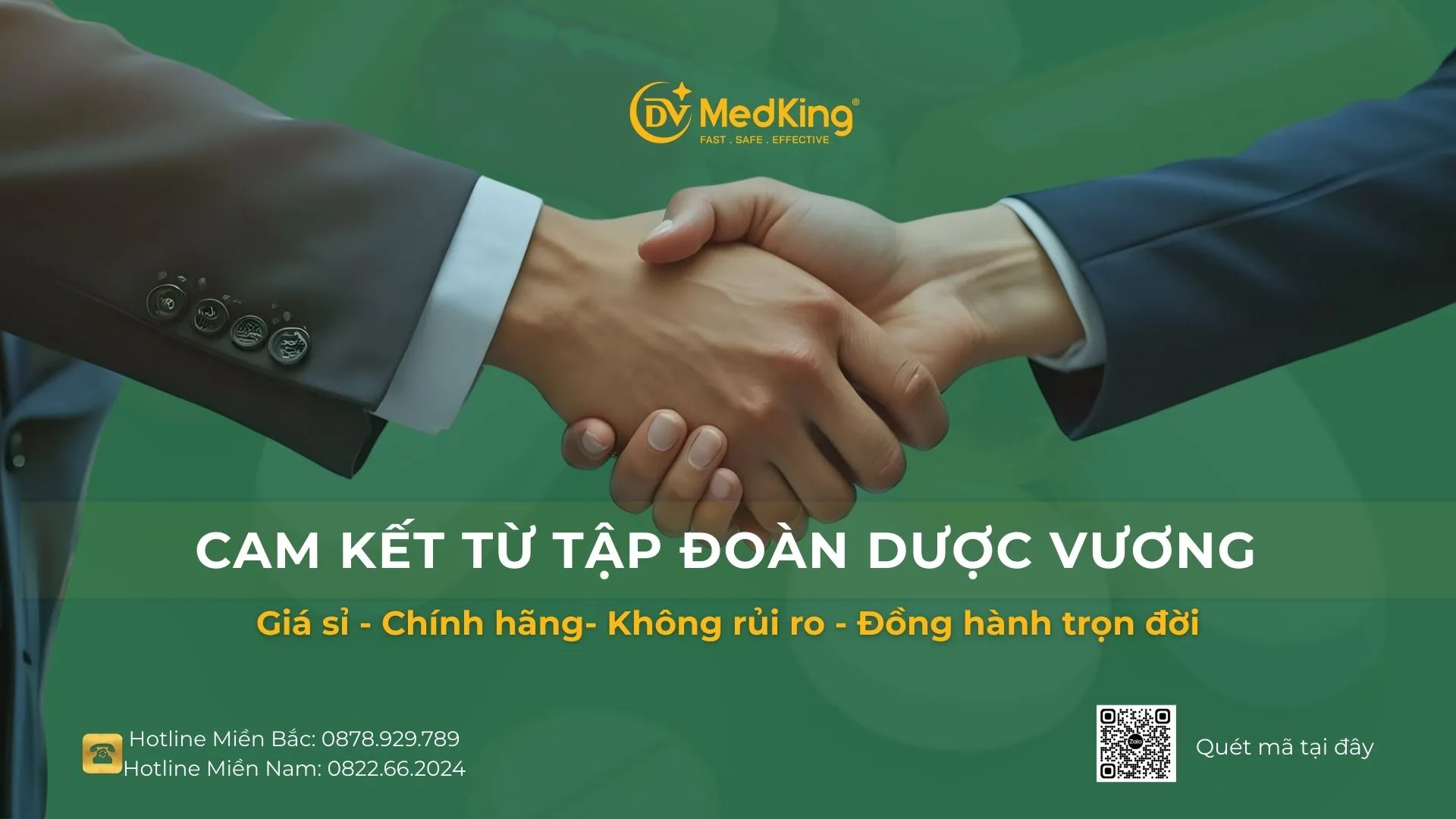 - Cam kết đồng hành xuyên suốt và chăm sóc tận tâm trọn đời: Tại DV MedKing, quy trình bán hàng chỉ thực sự bắt đầu sau khi hàng đã về kho của khách. Chúng tôi duy trì kênh kết nối hỗ trợ 24/7, sẵn sàng xử lý mọi khiếu nại, thắc mắc hay các vấn đề phát sinh sau bán hàng một cách nhanh chóng nhất. Với tinh thần nhân văn, chúng tôi cam kết không bao giờ bỏ rơi đối tác, luôn sát cánh chia sẻ mọi khó khăn để cùng nhau xây dựng một cộng đồng dược phẩm vững mạnh.